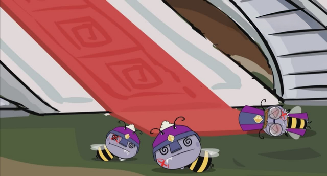 几个蜜蜂士兵正四仰八叉地躺在床上呼呼大睡。