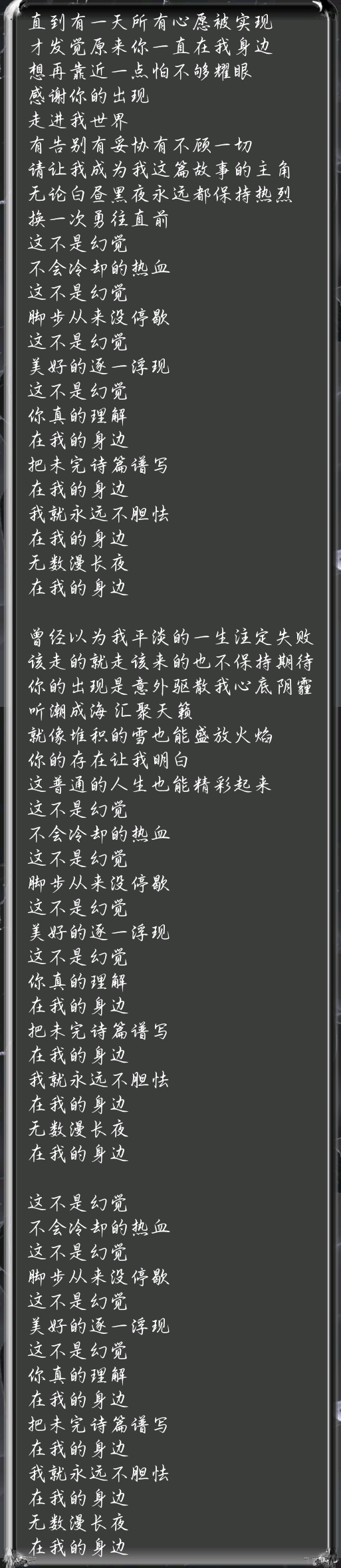 (完整歌词应该是这样的,之前在Q音上面截图识别出来的歌词严重缺失。因为歌词本身就少了一部分,已经反馈过了,也不知道他们能不能把完整版歌词更新出来)