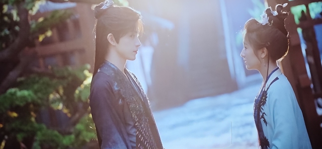灯光一打,映入眼帘是两个身着浅蓝色和浅黄色衣服的两个人