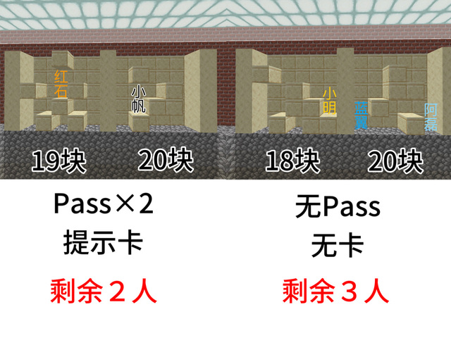 小明抢夺卡,抢他们的传递卡,再用传递卡,传给红石