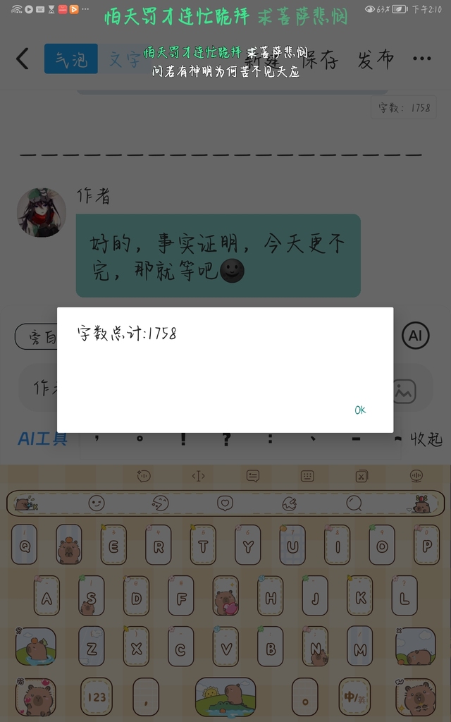 作者好的,事实证明,今天更不完,那就等吧🌚
