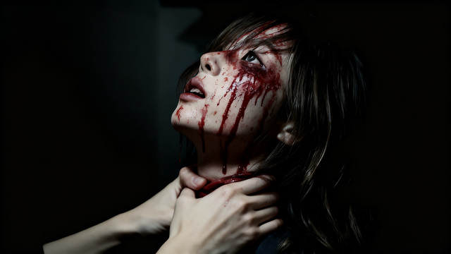 田宇两只手的大拇指用力压下她的咽喉