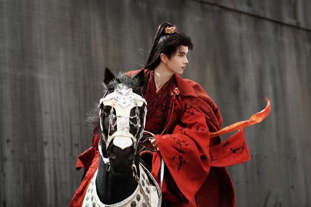 映入眼帘的是一位身着红衣的少年。他风姿翩翩,如一抹炽烈的霞光,带着一种她从未见过的独特风格,仿佛从画中走出的谪仙,又像是不经意闯入尘世的梦境。那抹红色在视野中跳跃,却并不突兀,反而衬得他的气质愈发鲜明。她的目光不由得为之停留,心中泛起一丝难以言喻的悸动。
