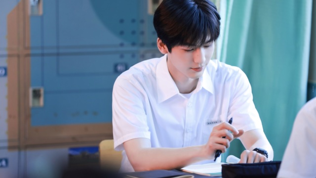 垂眸间,他的目光落在面前的试卷上,长长的睫毛在眼下投下一片浅淡的阴影,那份安静让人几乎忘记了呼吸。