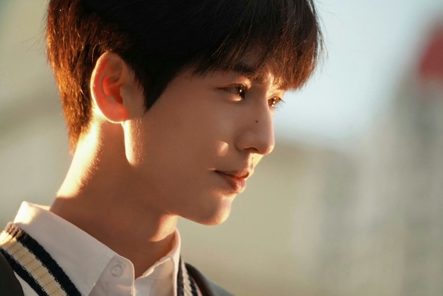 他的发丝在光线中微微闪烁,透出些许暖意。