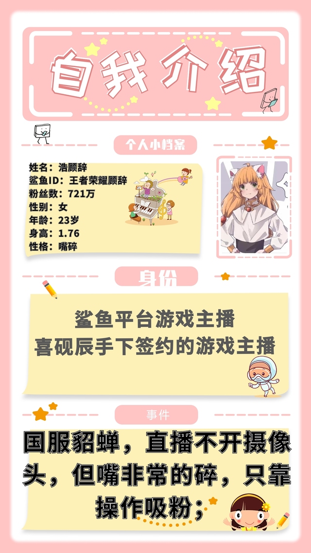 作为鲨鱼游戏区头部陪玩品牌,拥有327万粉丝。主管“砚辰·阿初”是个少言寡语却雷厉风行的女孩,后台流水每日起步40万。