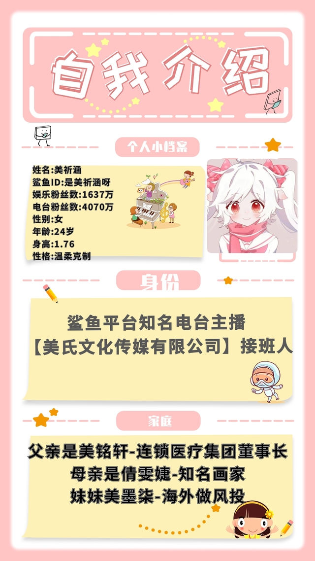 弹幕称她为“鲨鱼深夜唯一合法安眠药”,本可享有优渥生活,却偏选在凌晨两点用一声“你好,这里是美祈涵”抚慰失眠者的心灵,为他们清唱《后来》。上周因PK失败清唱一首歌冲上热搜,阅读量高达十七亿。
