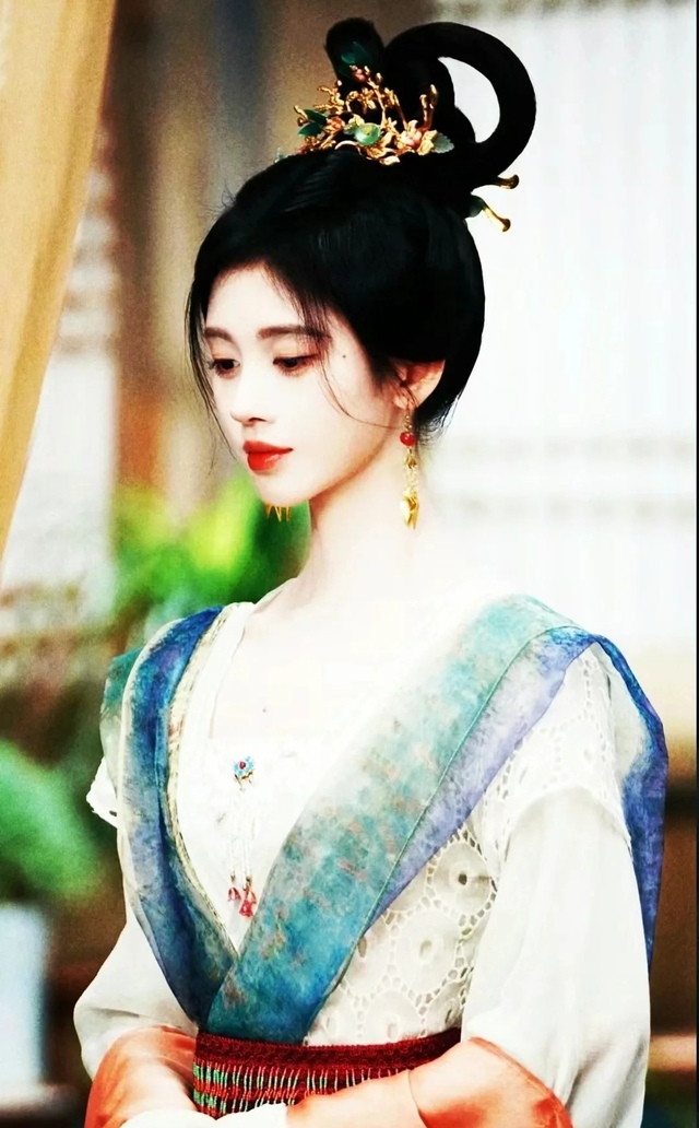 她身穿一袭蓝色宫装,以淡蓝为底,宛如晴空初霁,清透而宁静。衣料是上等的天蚕丝,质地轻盈如雾,仿佛将天际的云霞裁成了衣裳,宛如湖水般静谧,泛着淡淡的光泽,衣身上绣着银色的云纹,仿佛夜空中的星辰,点点闪烁,淡蓝的底色上绣着银白色的水波纹,层层叠叠,仿佛微风拂过湖面,泛起涟漪。袖口与领口镶着精致的珍珠,腰间束着一条镶嵌碧玉的丝带,勾勒出纤细的腰身。裙摆层层叠叠,行走时如波浪轻漾,端庄中透着几分灵动。发间点缀着几支银簪,与宫装相映成辉,整个人宛如从画中走出的仙子,清丽脱俗,又不失高贵典雅