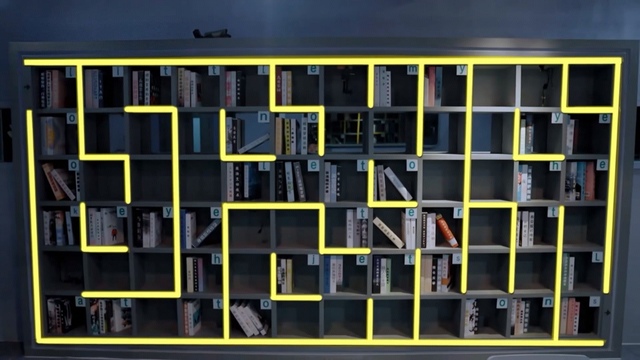蒲熠星皮皮,我把我们的交换日记藏在这个房间里了,用最短的路线走出书架上我标记出的那个迷宫,就能找到它了