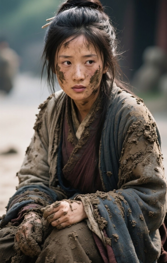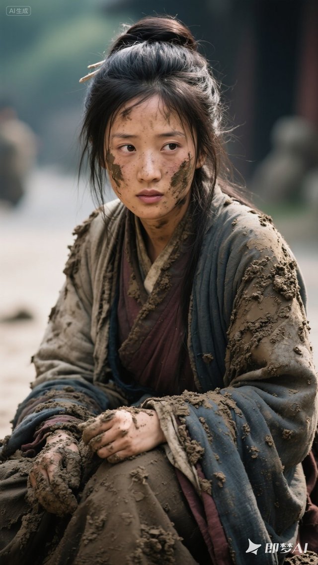 她飞快地在脸上抹了两把泥,又揉了揉眼睛,逼出几分生理性的泪水,让自己的模样看起来更加凄惨可怜。