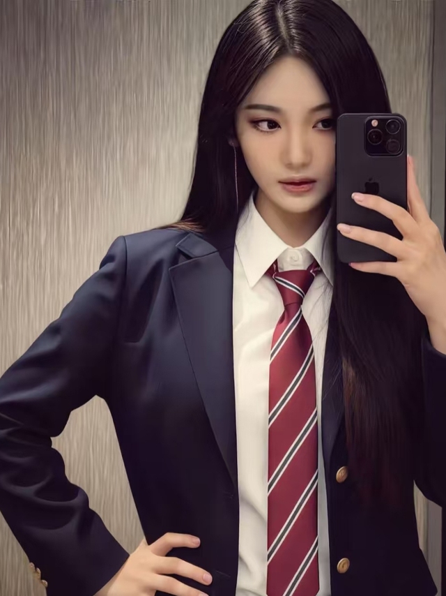 她换好校服在镜子面前照了照
