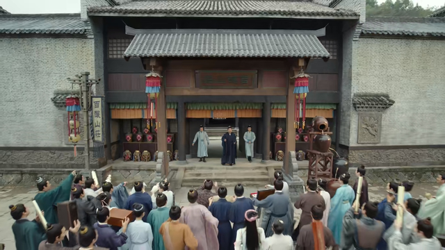 他们刚站稳,就见一位身着绸衫、面容精干的管家从门内踱步而出。他面对这鼎沸的场面,神色从容,只是抬起双手,向下虚按,示意众人安静