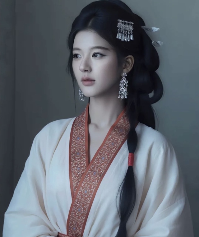 肤若白雪,乌黑的发丝柔顺垂落,衬得一张小脸不过巴掌大小。眉如远黛,唇不点而红,最令人屏息的是她那一双眼,漆黑明亮,澄澈的能倒映人心。目光与之相遇,仿佛便会迷失自我。