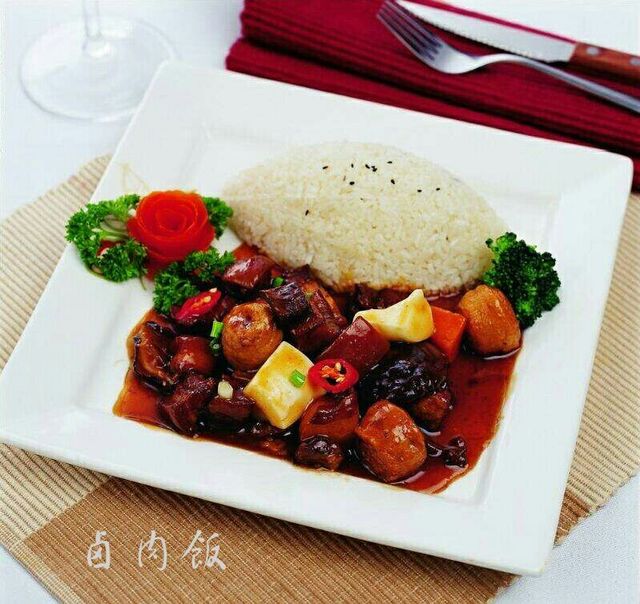 餐厅服务员小姐,您的卤肉饭好了
