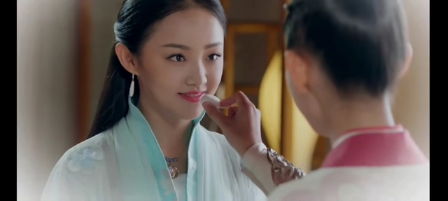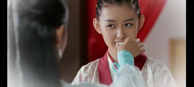 哪吒咬住糕点看了一眼小龙女把糕点吃了,拿起一块糕点然后喂给小龙女