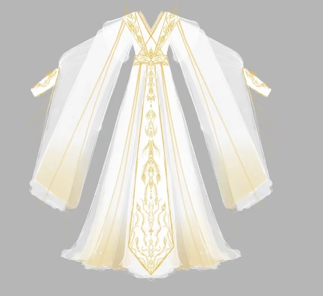 不远处,龙耀辰身穿一袭古风长裙,主体以白色为主,辅以金色装饰,交领设计衬得他身姿挺拔,长袖宽大且轻薄。