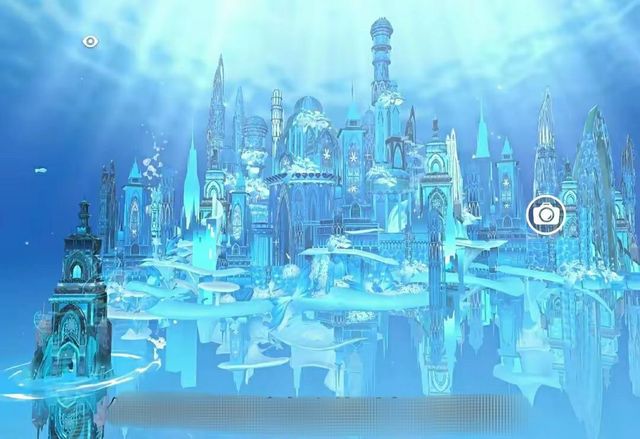 城堡建筑风格华丽且多样,尖塔、圆顶等错落分布,部分建筑表面有类似冰晶或水纹的装饰,增添了奇幻感。