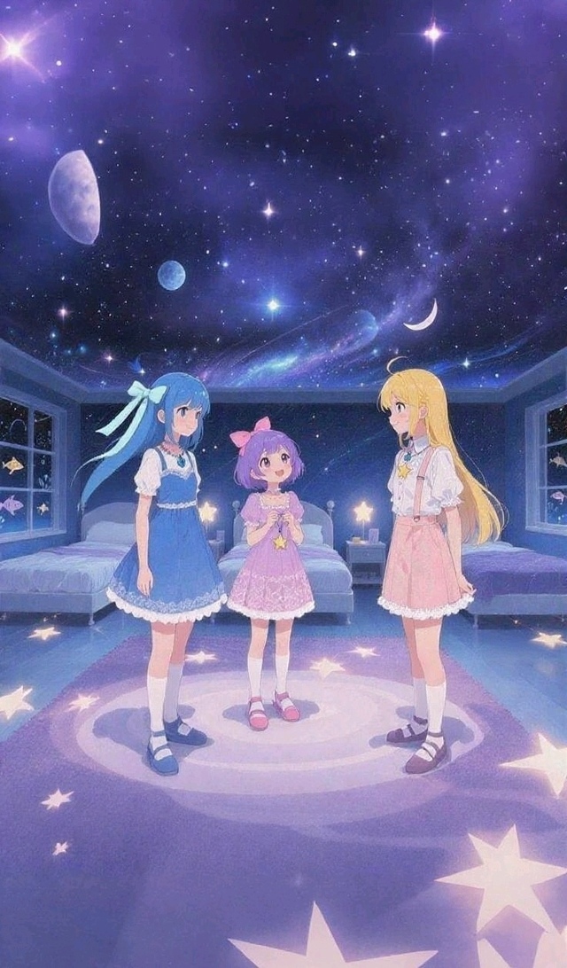 最后一点意识消散前,她好像又听见了星星的私语,细碎的,温柔的,像妈妈从前在她耳边哼的不成调的歌谣。眼皮彻底沉了下去,月光在她紧闭的眼睫上投下淡淡的影,整个房间都浸在这低低的月色与星光里,安静得能听见时光轻轻流淌的声音。