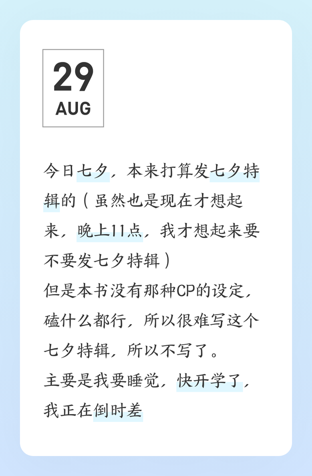 今日七夕,本来打算发七夕特辑的(虽然也是现在才想起来,晚上11点,我才想起来要不要发七夕特辑)