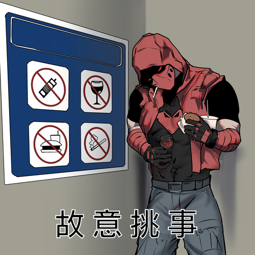 标志性的红色金属头盔在灯光下反射着冷硬的光泽,黑色的皮质夹克敞开,露出里面暗红色的紧身胸甲(一只红蝙蝠十分耀眼×)。