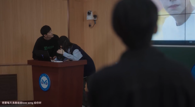 张陆让拿起电脑,脸上没什么表情,耳根却红了:“抱歉老师,是意外。”他走下讲台,回到座位时,林黎还埋着头,像只受了委屈的鸵鸟。