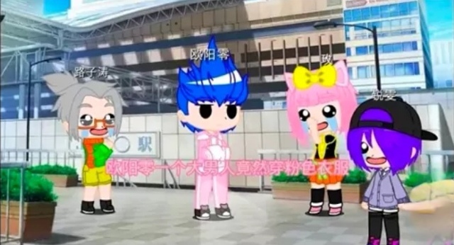 杨天乐哈哈,欧阳零没想到你还穿这么粉的衣服,笑死我了/边笑边说