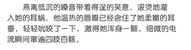 燕离却牢牢锁着她,不让她离开自己怀抱分毫。他依旧贴着她,薄唇沿着她纤细的颈线暧昧地游移,嗓音含混而灼热,带着醉意和一种近乎撒娇的无赖,喷洒在她敏感的皮肤上: