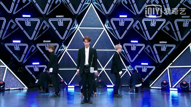排列好队形,站在最前面的是丁泽仁,Justin和李权哲则是站在他的左右两侧.