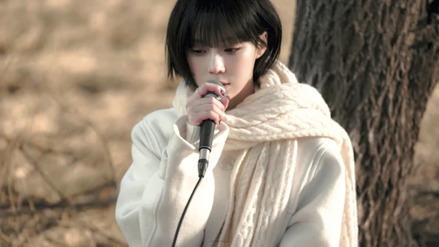 宽大的军训服显得女孩更加娇小,细碎刘海的遮挡下,是几近病态的白色。