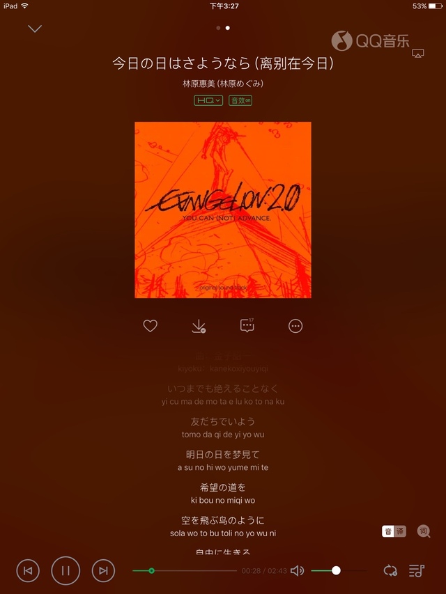 《新世紀エヴァンゲリオン新剧场版:破》插曲;《梦幻联动秋冬篇》Chapter.10插曲;《侏罗纪世界外传:穿越时空大揭秘》OP1
