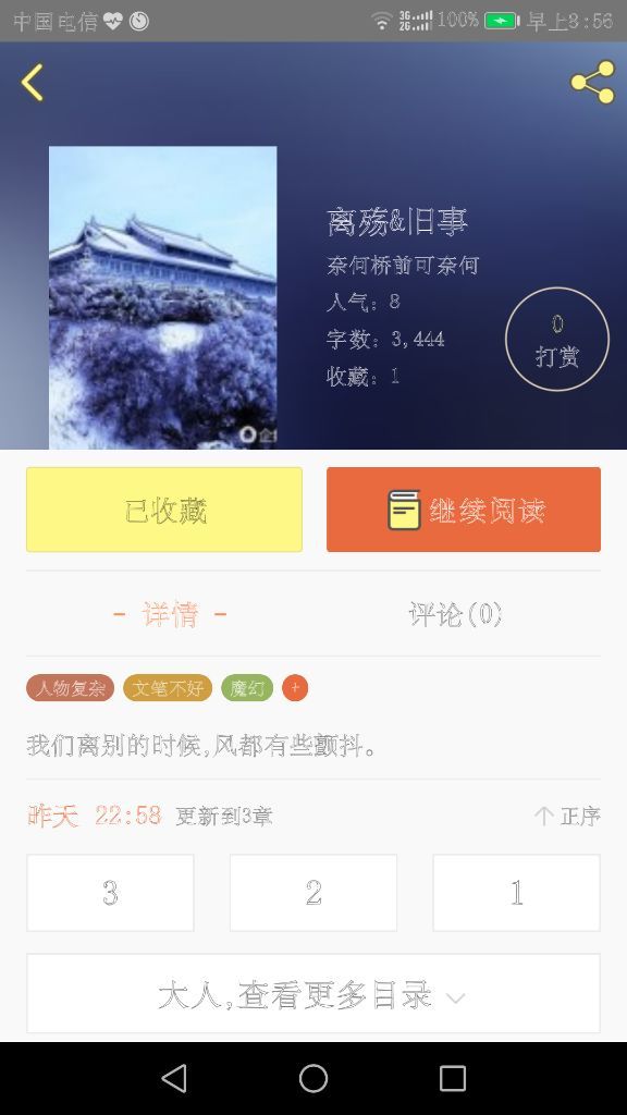对了孩子们,这本书我可能要停更一段时间吧,没有灵感了,不过宝宝开了个新坑,书名叫《离殇&旧事》,还望多多关照哦。
