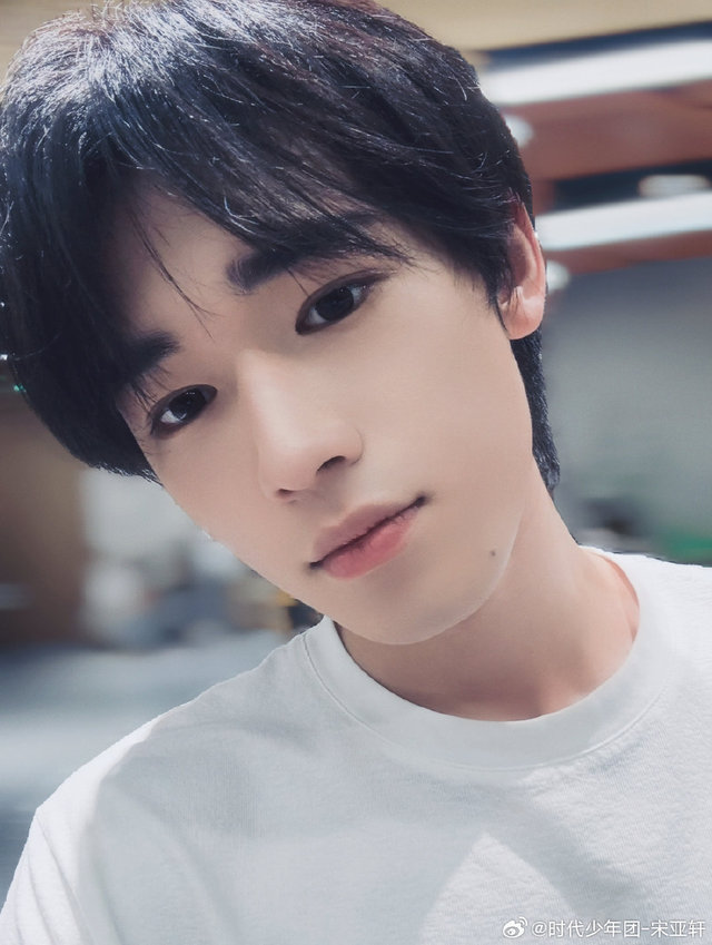 宋亚轩穿的更简单了,就一套白色T恤搭配牛仔裤。