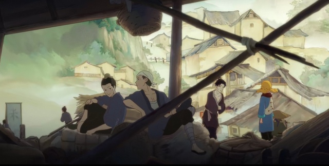 殷风看见了萧笃的行为,把伞扔下,跳到对面。