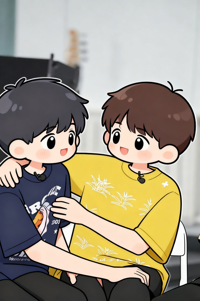 两人靠在沙发上小声嘀咕,完全没注意到门口的王橹杰还没走——他手搭在门把上,听着屋里软乎乎的对话,眉梢又蹙了蹙,最后还是没说什么,轻轻带上门走了。