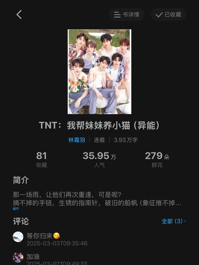 然后这本书是主要写三大的(祺鑫翔霖文轩),可能翔霖会多一点,因为这个大大自己是磕翔霖的