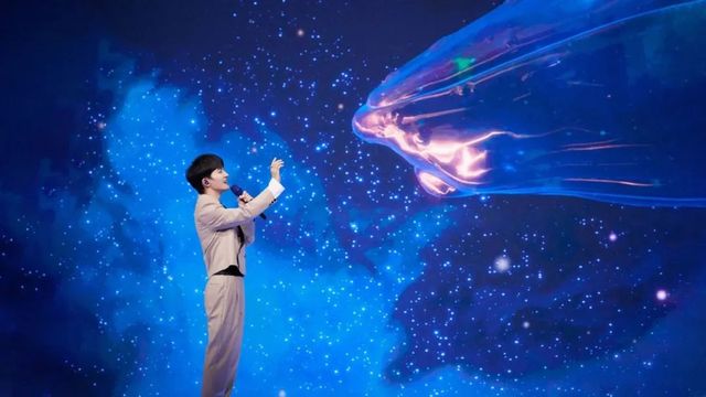 观众席爆出尖叫,灯海瞬间变成蓝色潮汐。