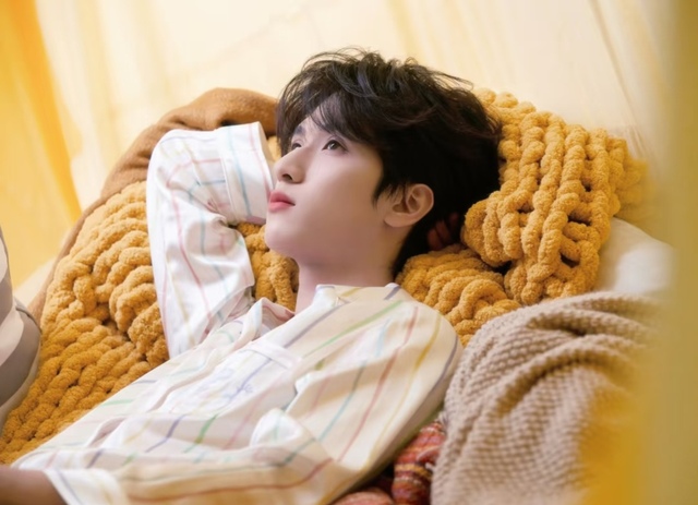 似乎是刚洗过澡,黑色的短发还有些微湿,随意地耷拉着,少了几分平日的疏离感,多了些居家的温柔。