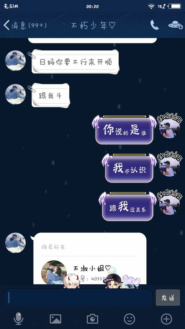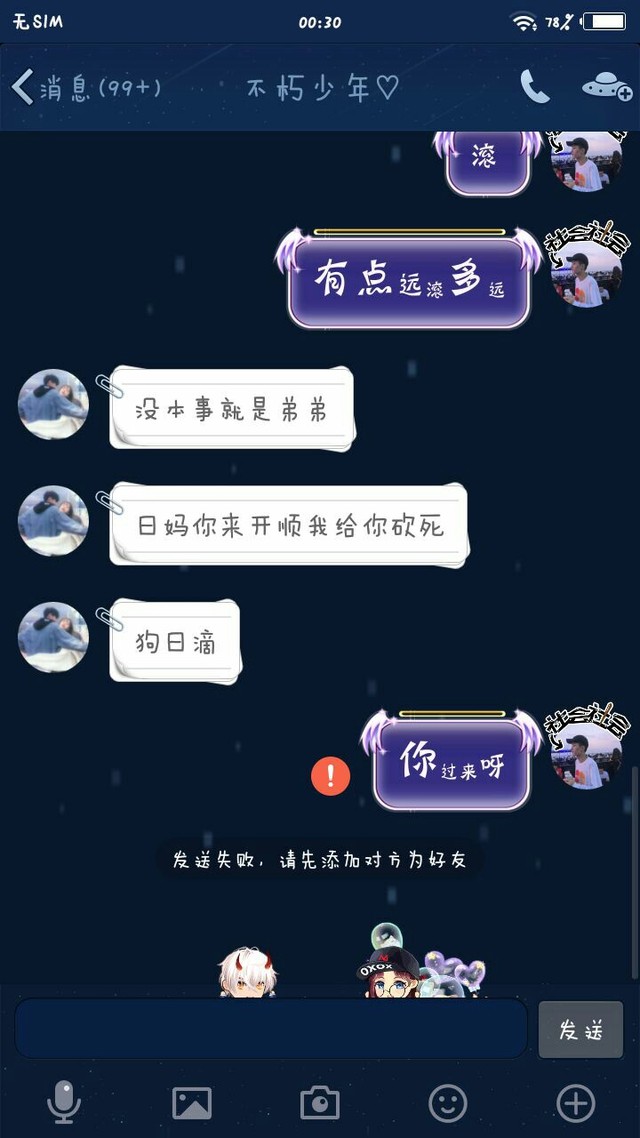 昔梦大大各位小可爱们,你们加我的QQ,我有可能拒绝了,那是因为,前几天我的一个朋友,他的女朋友出轨了,然后我去,替他出气,然后那个出轨的女人的,奸夫来找我说,不要去烦那个出轨的女人,还说要到我们这里来打我,我说,要他过来,他就把我删了,还说会找人来加我QQ,然后骂我什么的,所以你们我的QQ,我有可能拒绝了