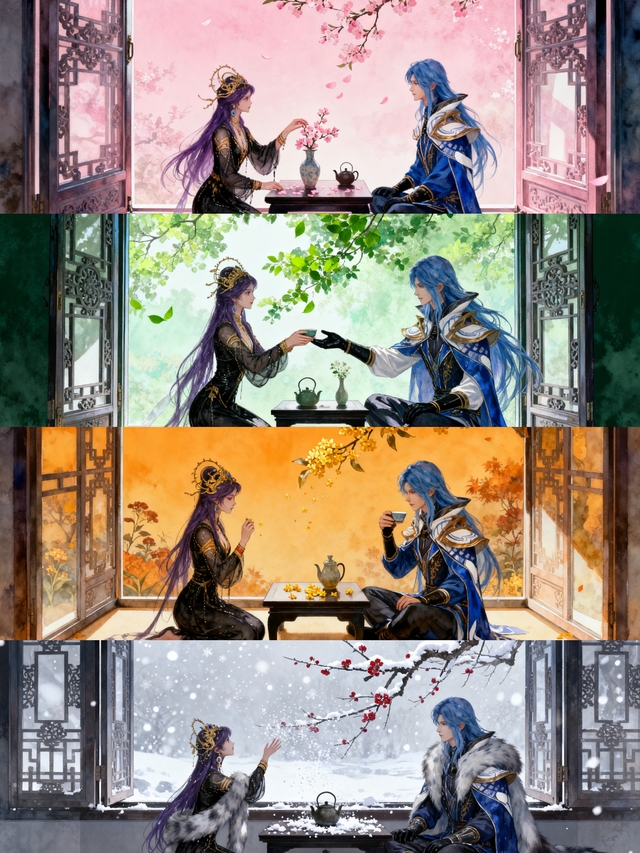 殿外的灯火透过窗棂,在你脸上投下斑驳的光影,他看着你微张的唇角,带着淡淡的酒气,像熟透的果实,诱人采摘。