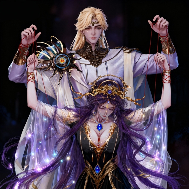 他坐在床边,指尖轻轻描摹着你的眉眼,蓝色的眸子里满是缱绻的爱意——往日里,你总躲着他,只能隔着远远的距离,看着你在祭司殿忙碌的身影,看着你和阿加雷斯说说笑笑,心里又酸又涩,却连靠近的勇气都没有。