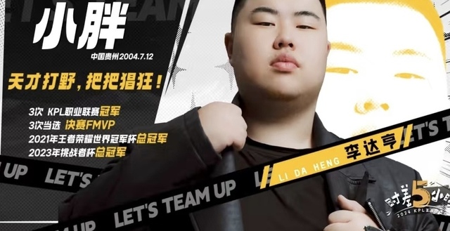 小胖-李达亨Hello 大家好 我是重庆狼队打野位选手小胖 李达亨(一脸憨憨的傻笑)