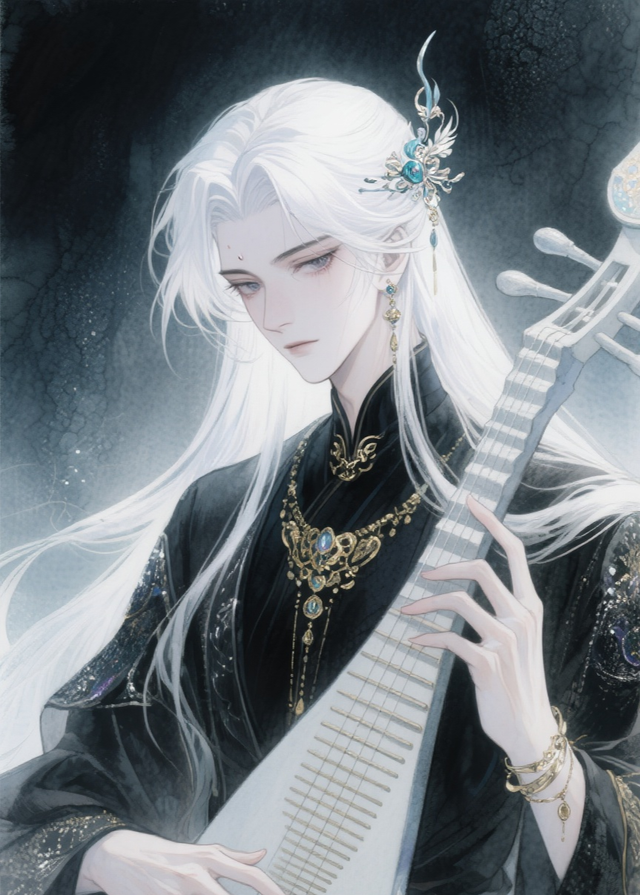白霜池(好一位楚楚可怜的美男子,这乐声也甚是好听。)