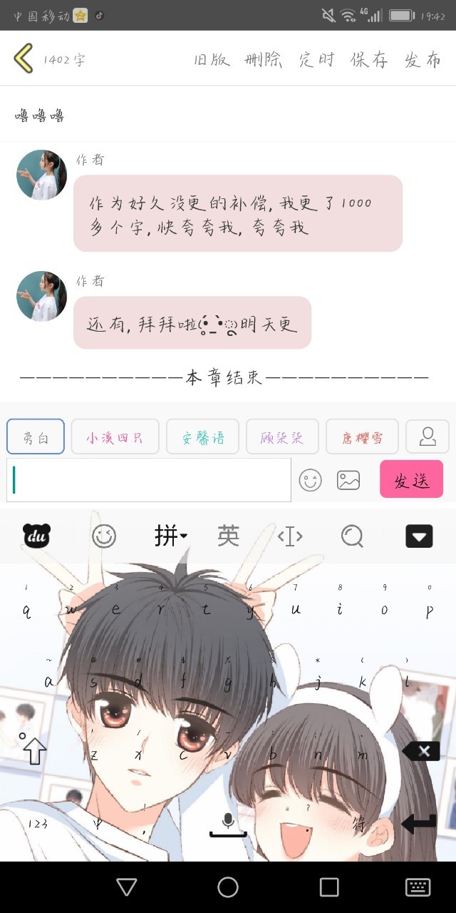 作者作为好久没更的补偿,我更了1000多个字,快夸夸我,夸夸我