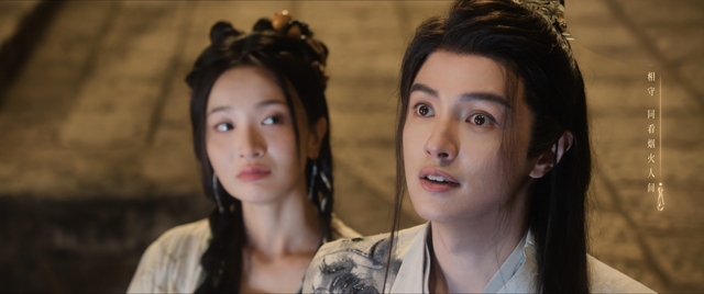 两人深情相视着,就在这个时候夜空绽放着烟花,听晚见状便慢慢靠近晋安,结果要吻的时候晋安突然戴起了面甲。
