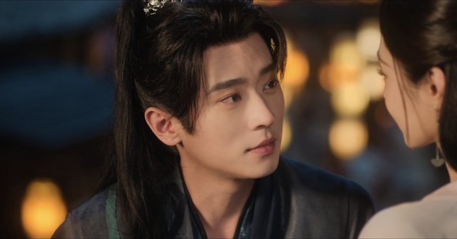 听晚和晋安在街上每个摊子间游走,兴致高涨,晋安更是紧紧牵着听晚的手,听晚玩游戏晋安就在一旁宠溺笑看着她。