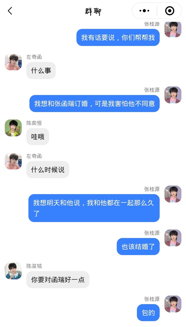 陈浚铭哎呀,这不是想庆祝张桂源明天的求婚嘛