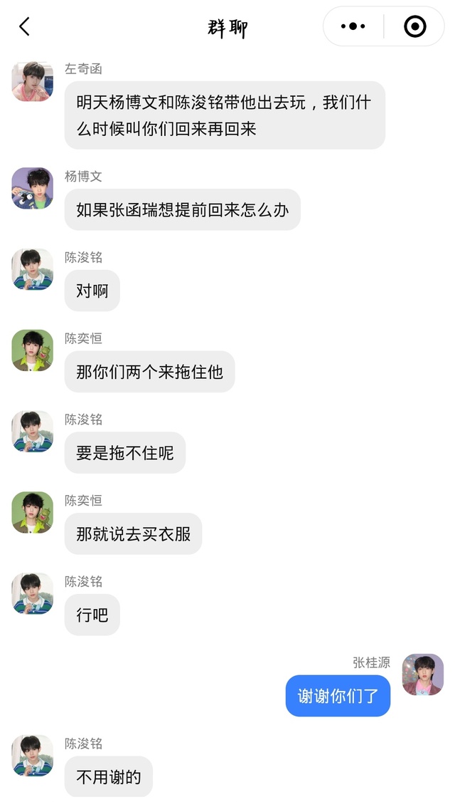 陈浚铭要不我们今天多做点菜吧,就当做祝福张桂源和张函瑞了