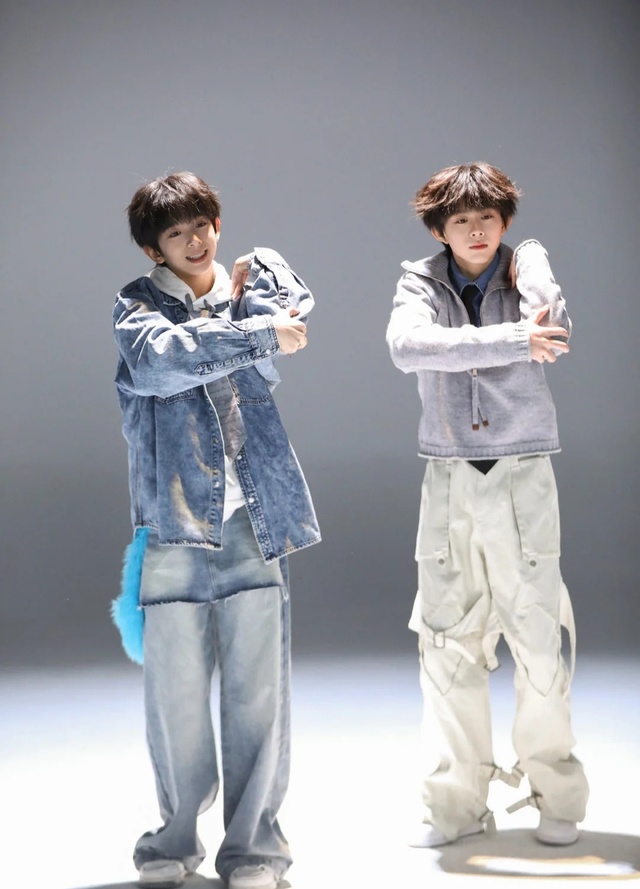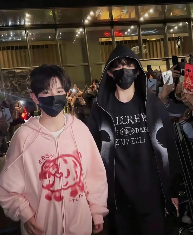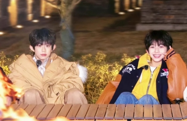 杨博文和左奇函穿了一件外套就出门了,因为外面很冷,所以穿的外套