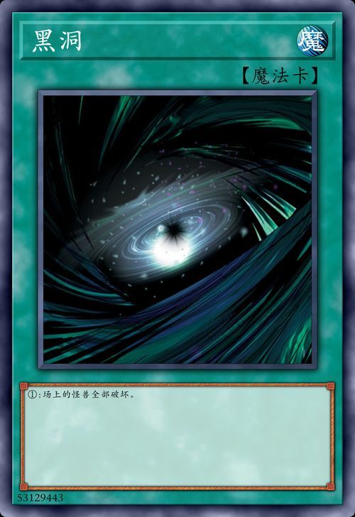 卡片介绍:【卡片名字:黑洞】【卡片种类:通常魔法卡】【效果:场上的怪兽全部破坏】