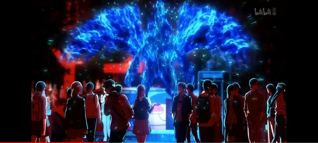 在李箱的视角里,远处出现了一个全身上下燃烧着蓝色火焰的诡异人影。